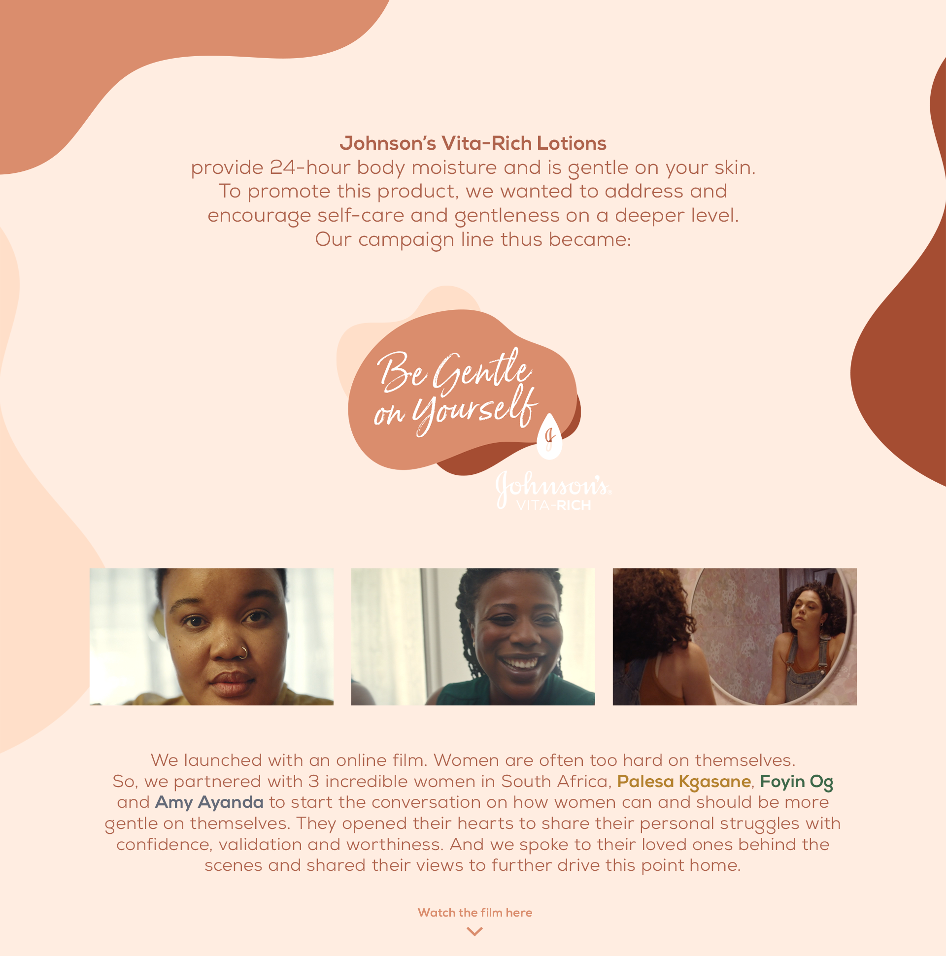 Year: 2020 / Client: Johnson’s / Agency: King James Group, South Africa / CCO: Alistair King / ECD: Danni Pinch